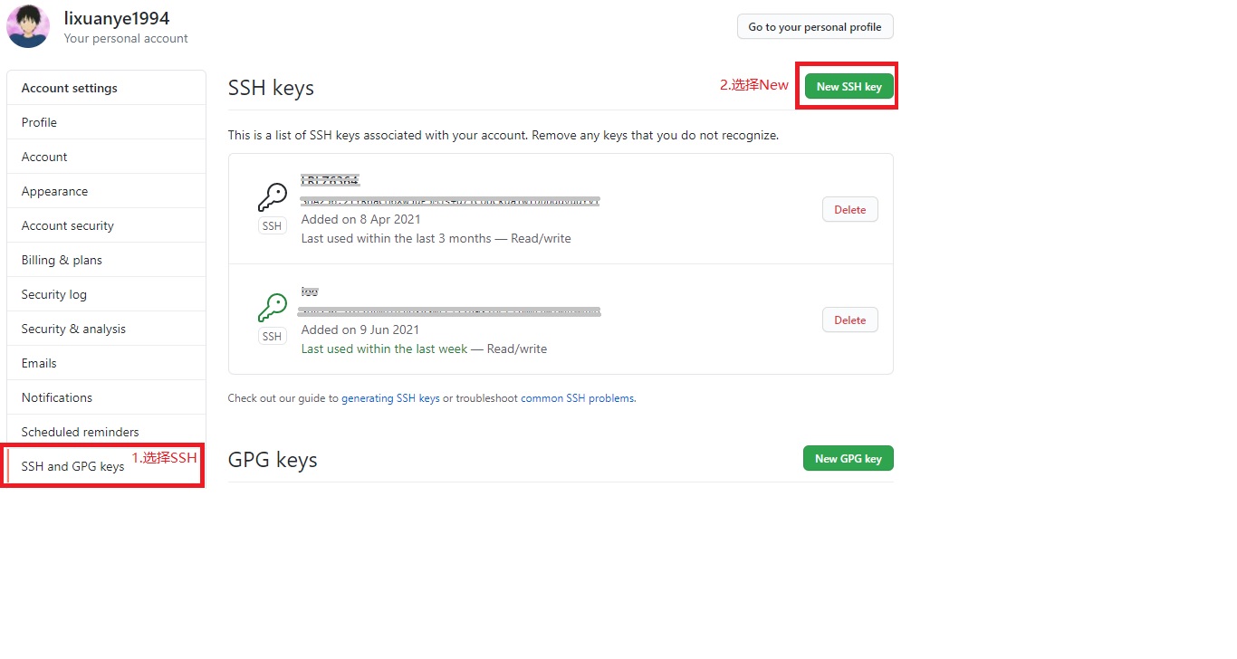 为什么要配置这个呢?因为你提交代码肯定要拥有你的github权限才可以,但是直接使用用户名和密码太不安全了,所以我们使用ssh key来解决本地和服务器的连接问题。