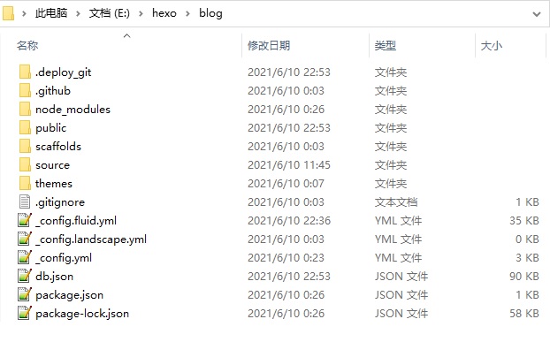 初始化完成以后,在hexo文件夹中会生成一个blog文件夹实例